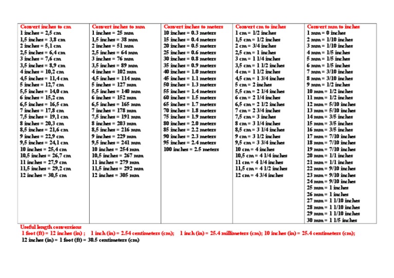 Convert Inches To Cm Metre Inch