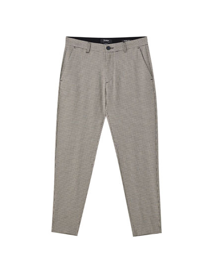 Pull And Bear Espadrilles Pull Bear Pantaloni Blu Navy Con Caviglie Elasticizzate E Stampa A Quadretti Uomo