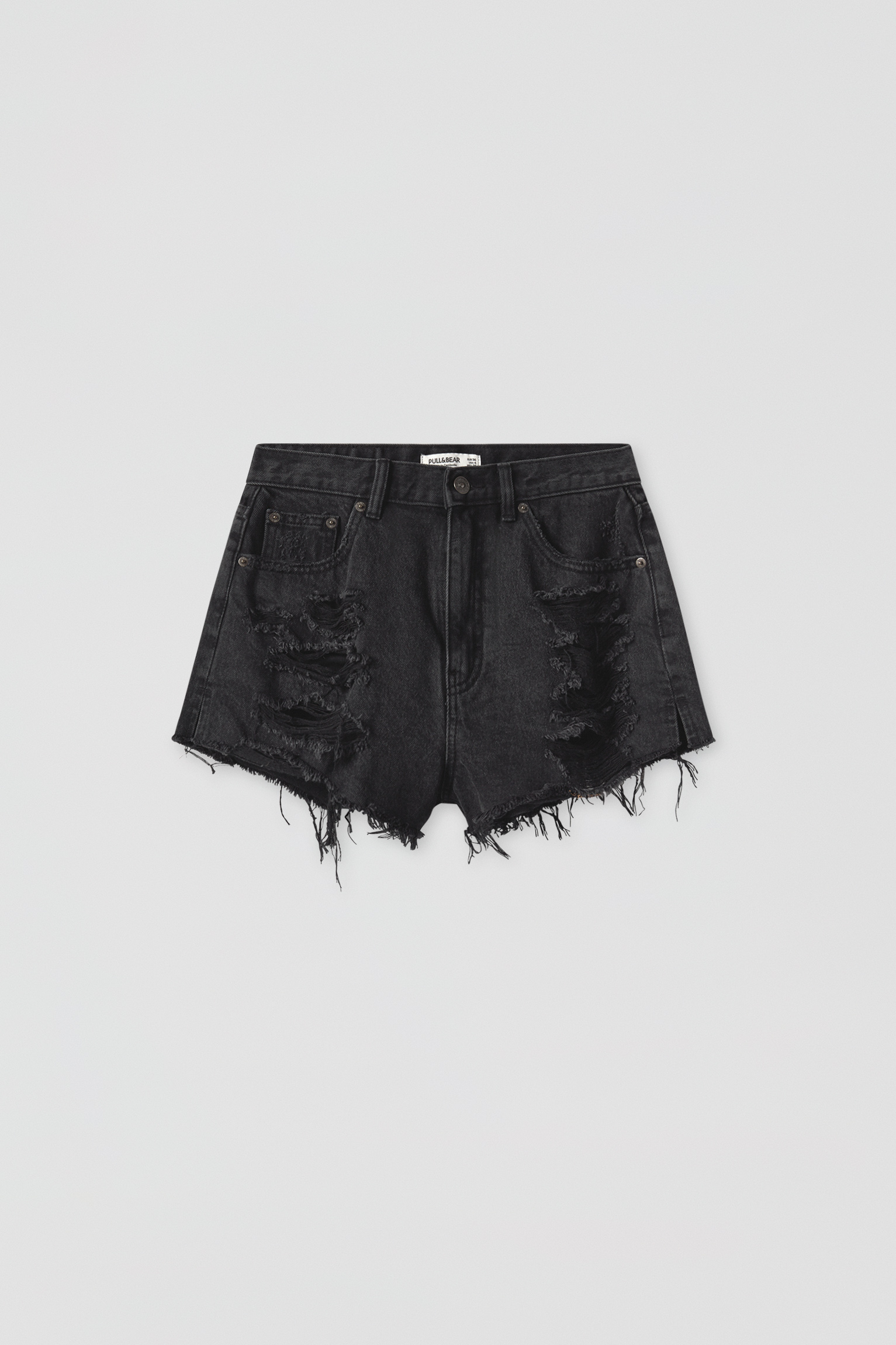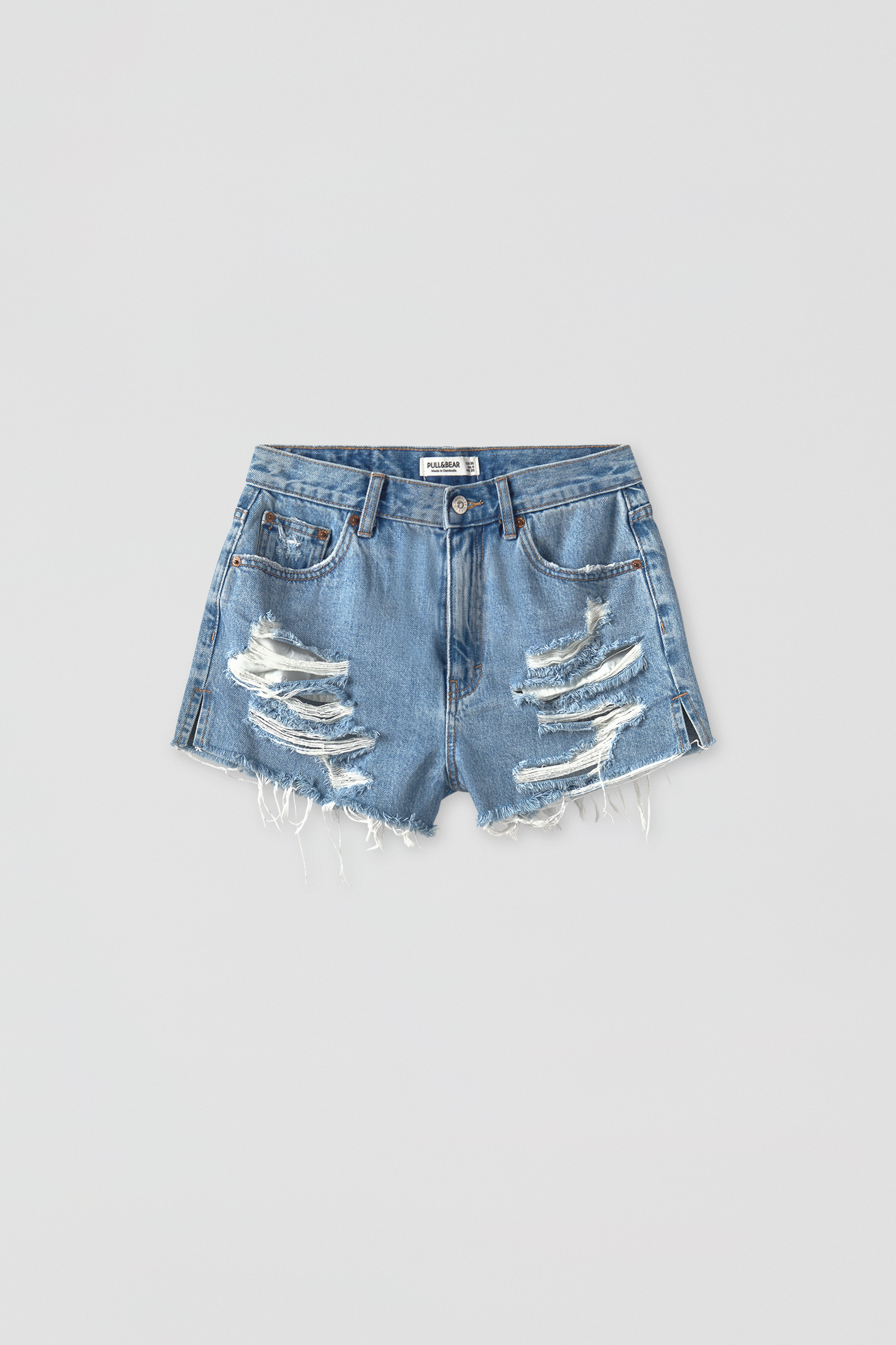 Pantaloni Scurți Din Denim Cu Talie Inaltă și Rupturi Pull Bear