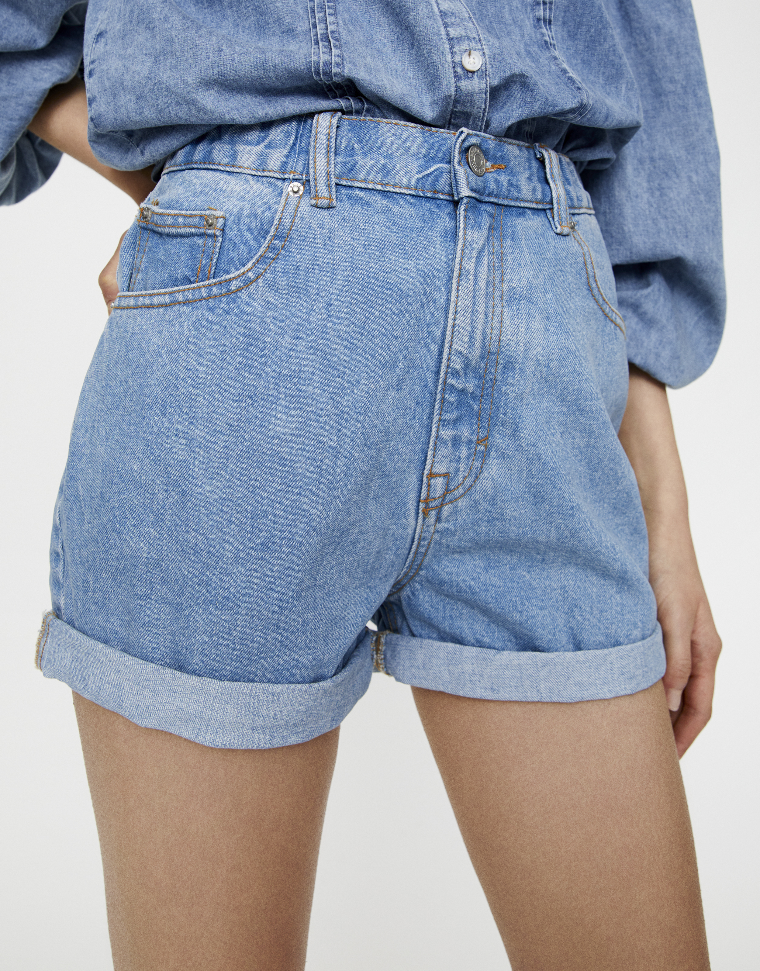 Pantaloni Scurți Mom Cu Betelie Elastică Pull Bear